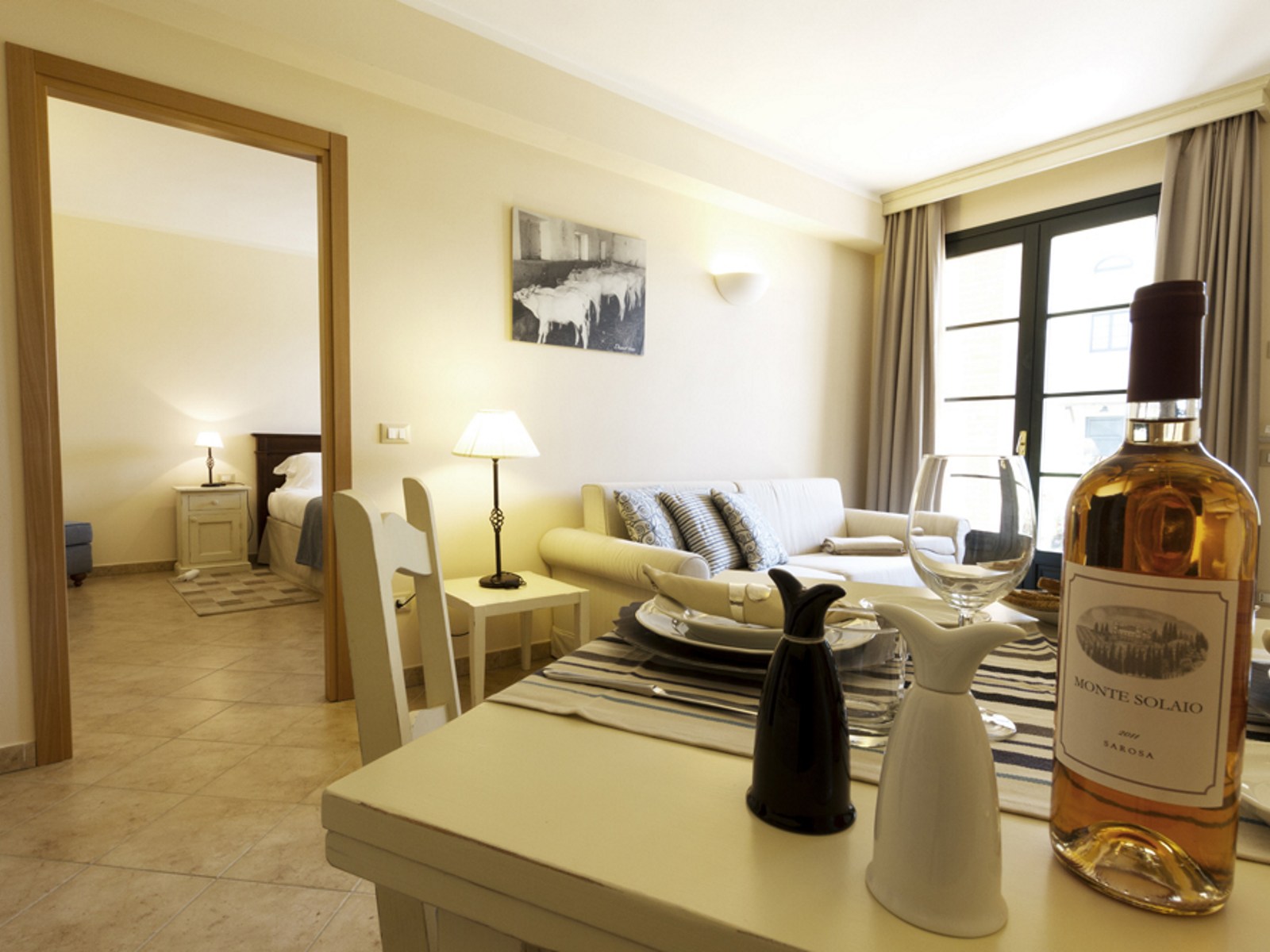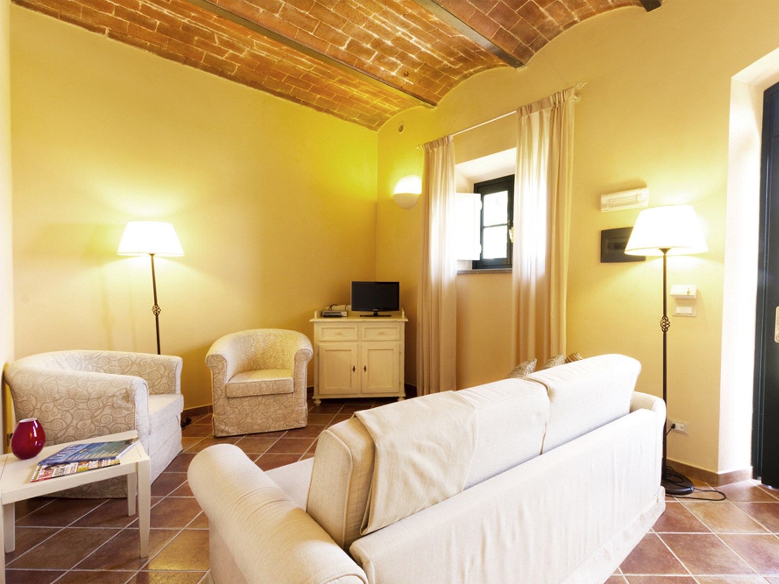 ab 74 € / NachtDoppelzimmer mit Bad im Erdgeschoss, großzügiges Wohnzimmer mit Schlafsofa. Komplett ausgestattet mit Safe, kleinem Kühlschrank und Klimaanlage