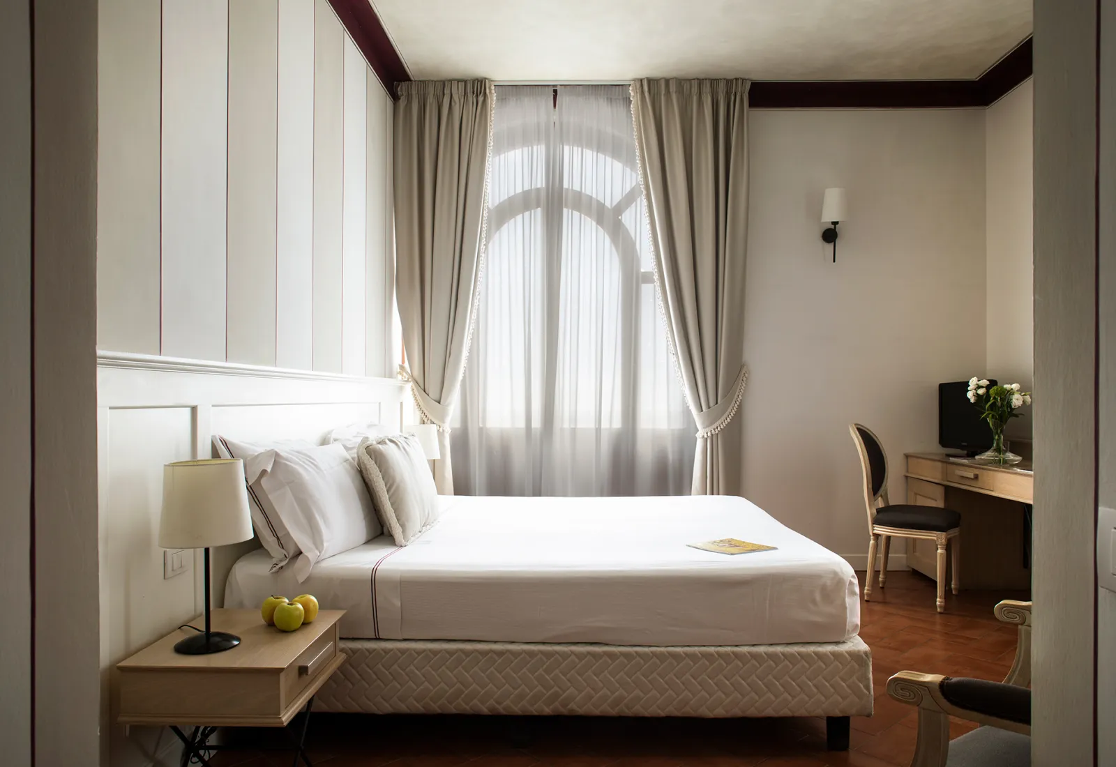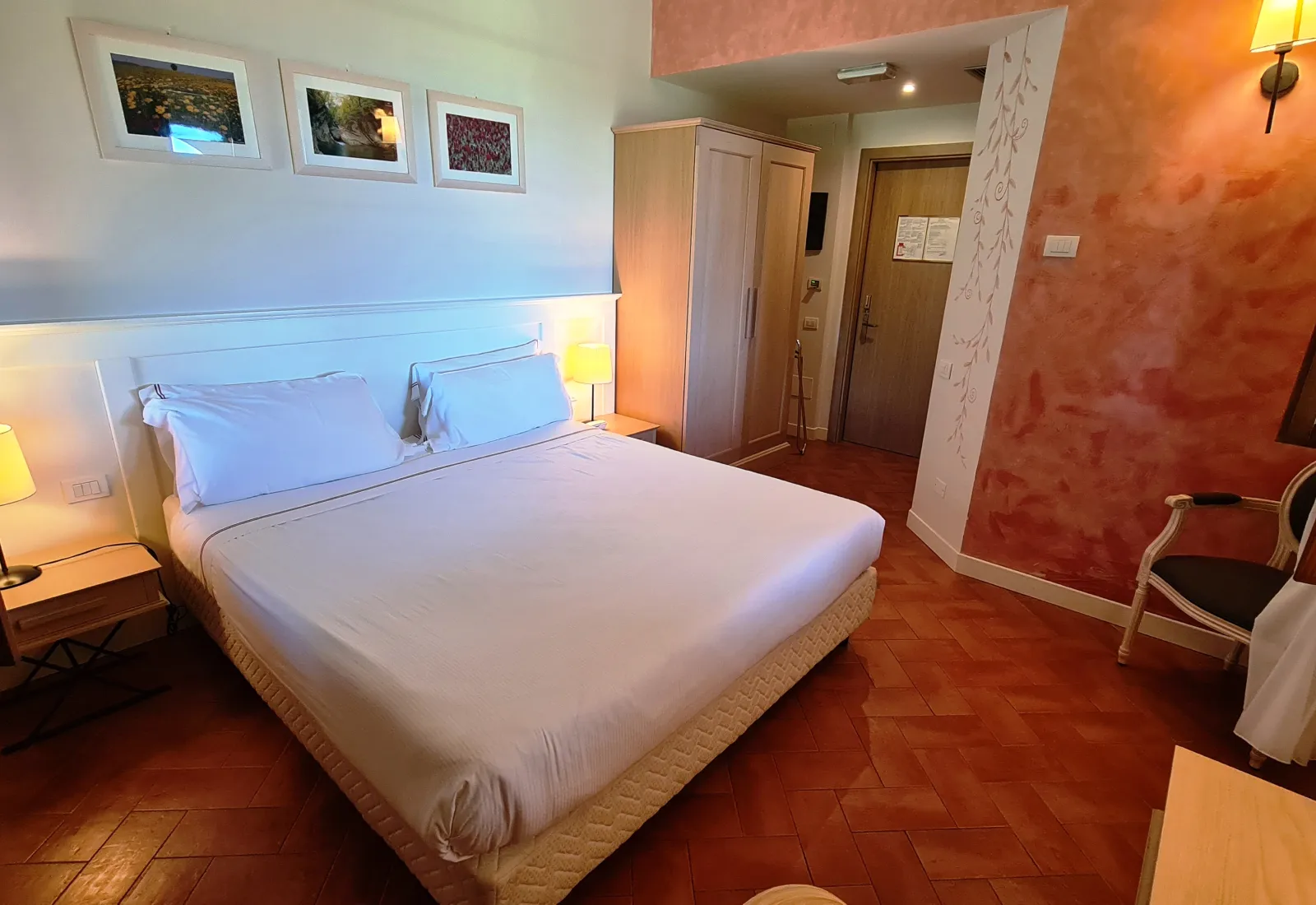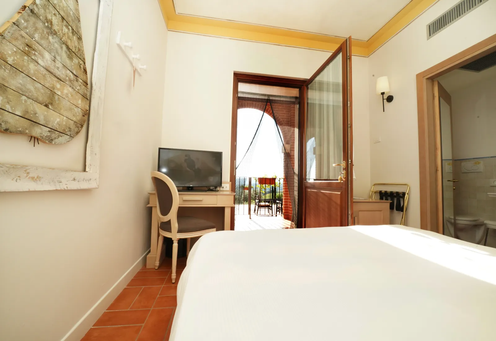 ab 70 € / NachtZimmer mit 16–18 m² Wohnfläche, in sanften Farbtönen gehalten und mit Annehmlichkeiten ausgestattet, die maximalen Komfort garantieren. Das Badezimmer verfügt über eine geschlossene Dusche und ein Pflege-Set. Einige Zimmertypen bieten zudem einen kleinen Balkon.