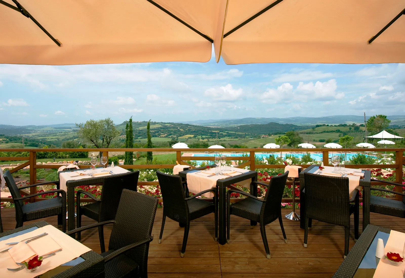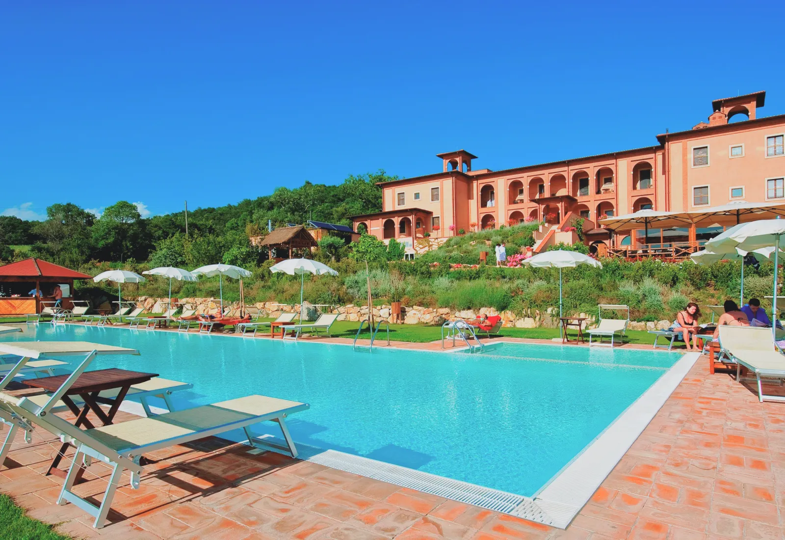 Im Saturnia Tuscany Hotel & Spa Resort kannst du im modernen Wellnessbereich neue Energie tanken, dein Erlebnis mit sportlichen Behandlungen und Massagen abrunden oder dich im Pool regenerieren, bevor du das Beste der lokalen Küche genießt.